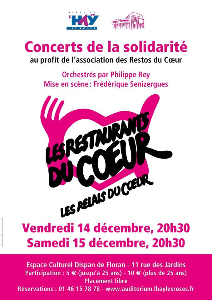 Au programme : musique, convivialité et solidarité. Les recettes seront intégralement reversées aux Restos du cœur. vos places auprès de la billetterie de l’auditorium !