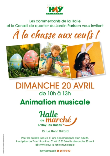 Dimanche 20 avril 2025 de 10h à 13h, la Ville en collaboration avec le conseil de quartier du Jardin Parisien, organise sa chasse aux œufs à la Halle de marché et sur le petit jardin du marché. Sont invités à participer tous les enfants jusqu’à 11 ans accompagnés par un adulte. La compagnie musicale le « Quartet du jardin » accompagnera en musique les recherches des enfants !